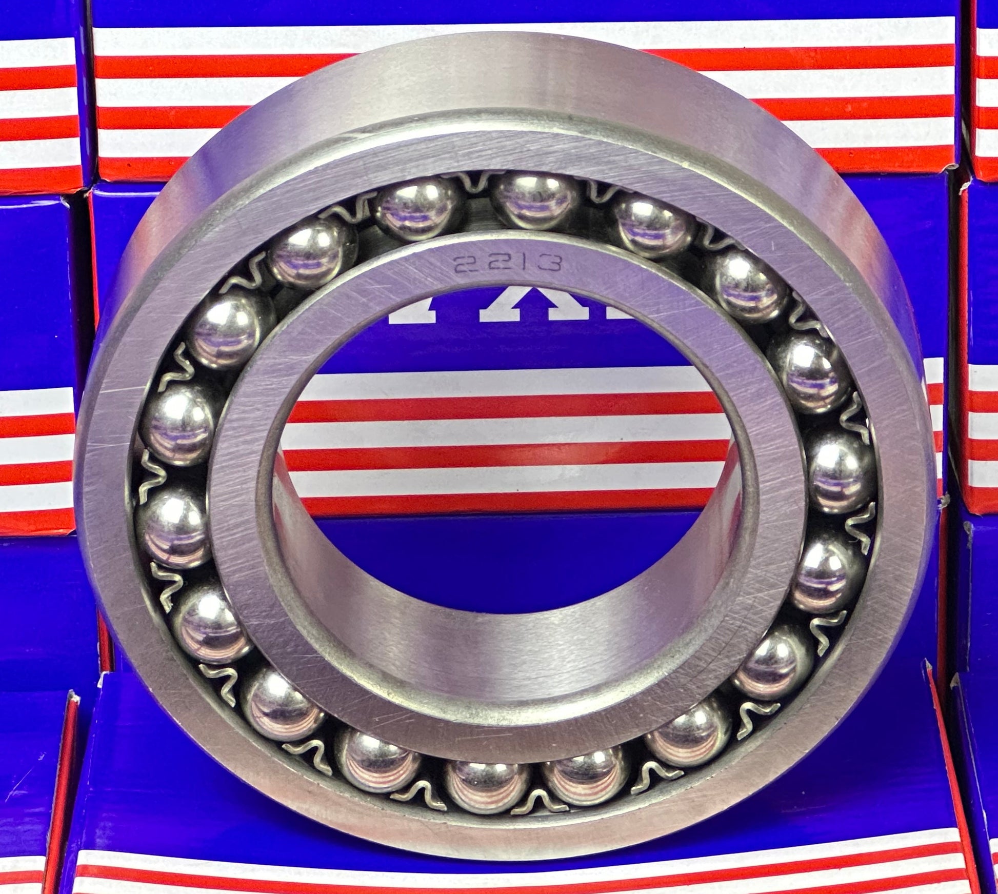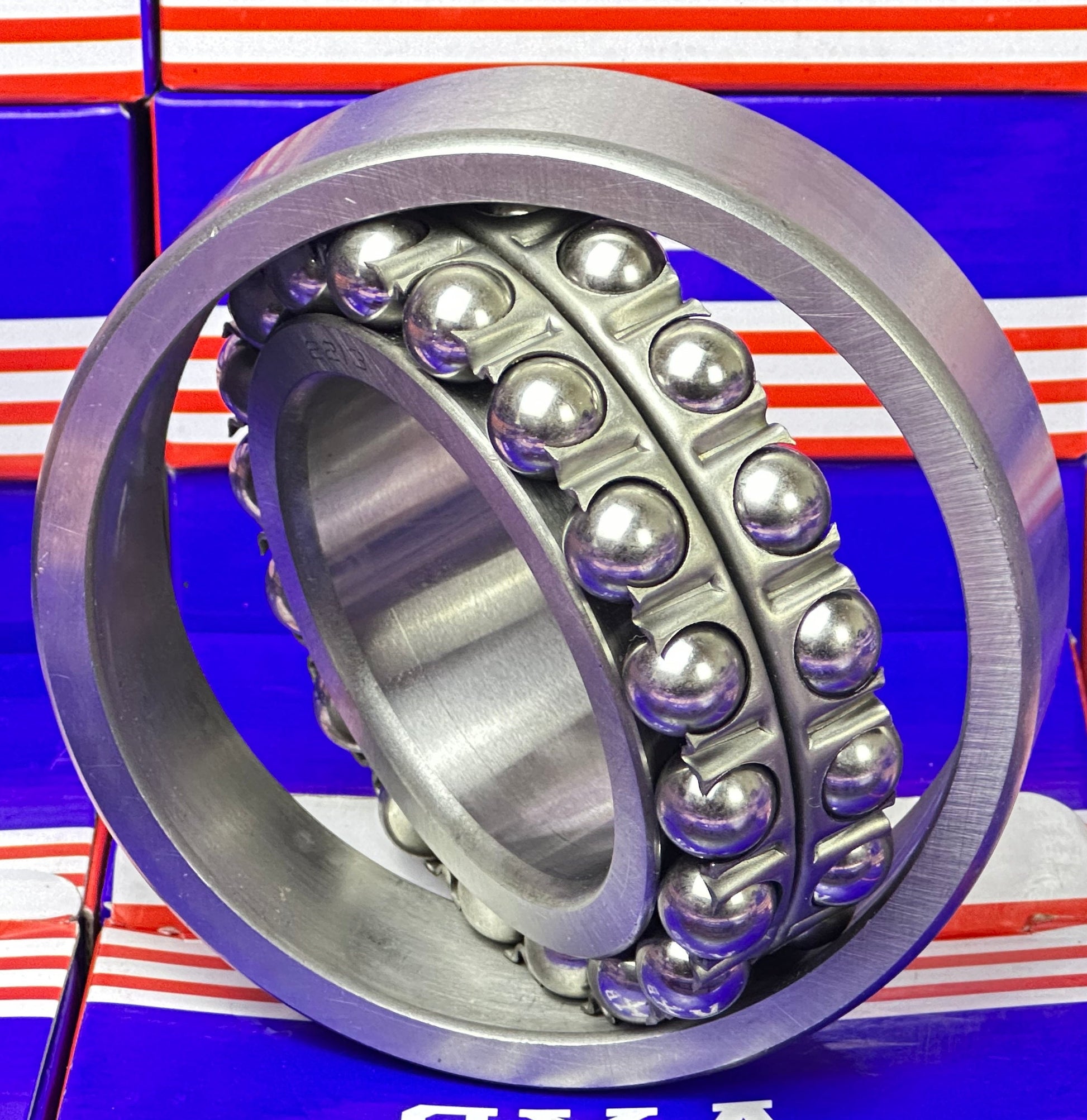 2213 Self Aligning Ball Bearing has a spherical outer ring raceway, the balls and cage continue to rotate, this type of bearings is suitable when the displacement of the centers around which the shaft and housing rotate and shaft deflection are likely to occur, Bearing is made of Chrome Steel.